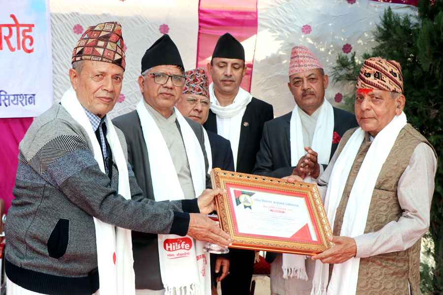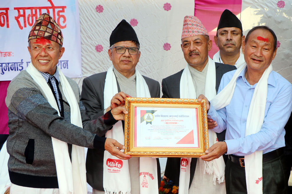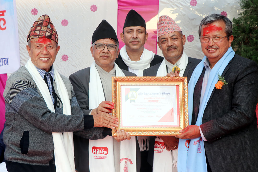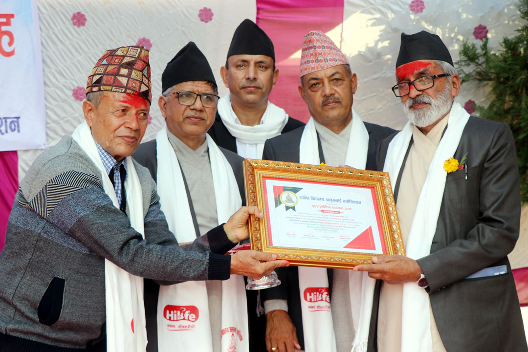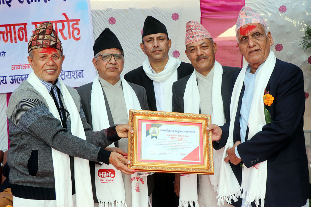 Honorable Tej Bahadur KC and Mrs Laxmi KC being Felicitated