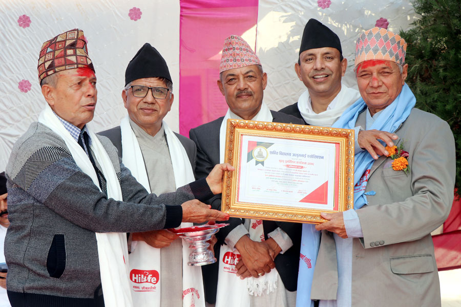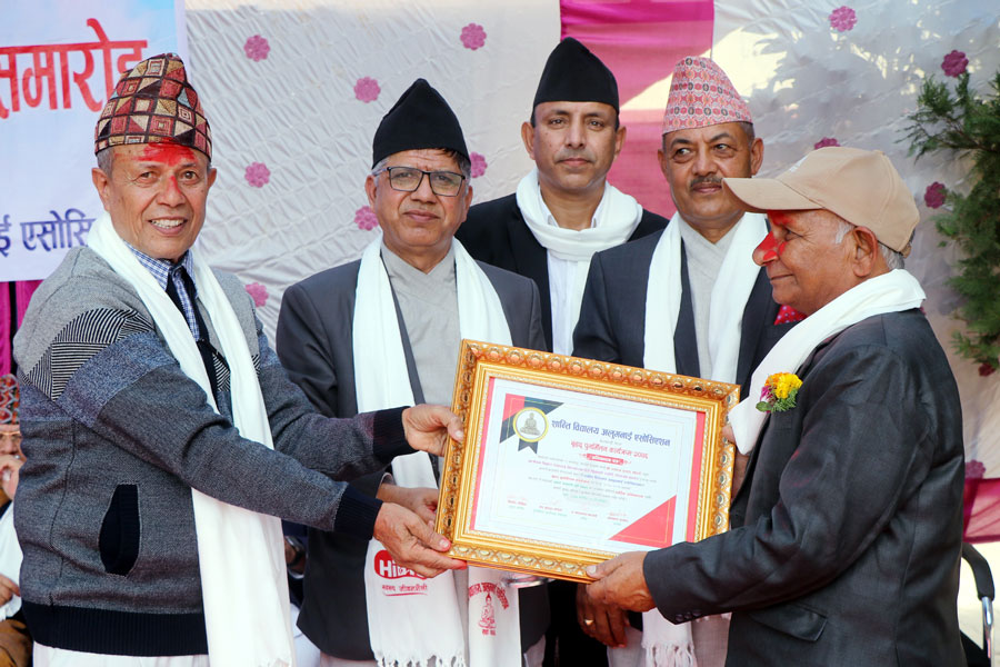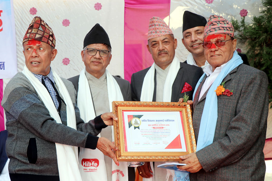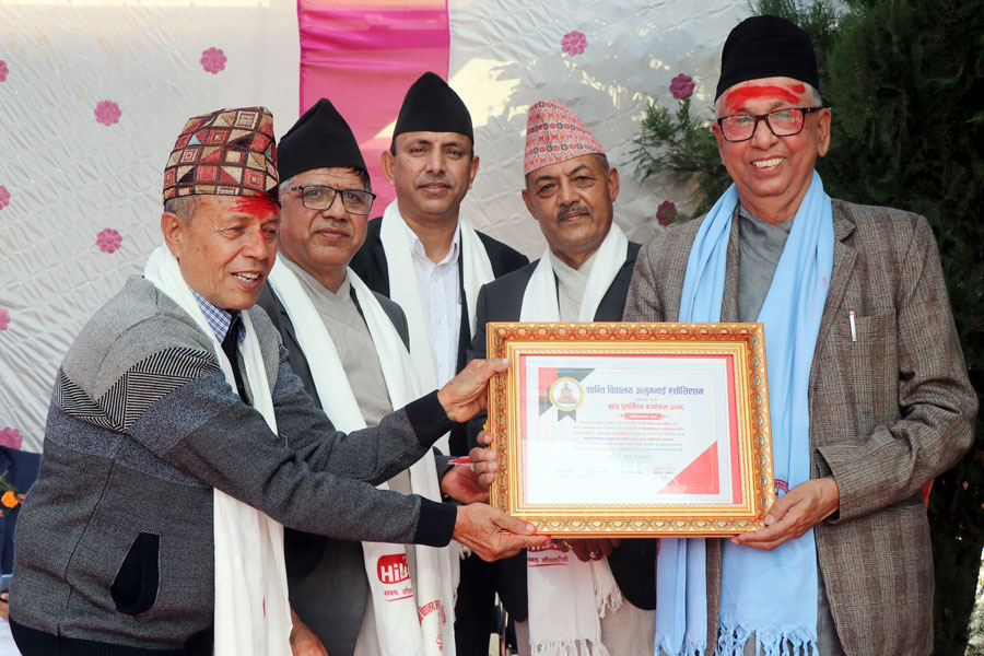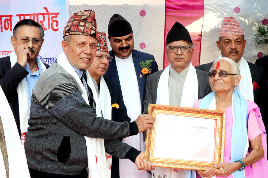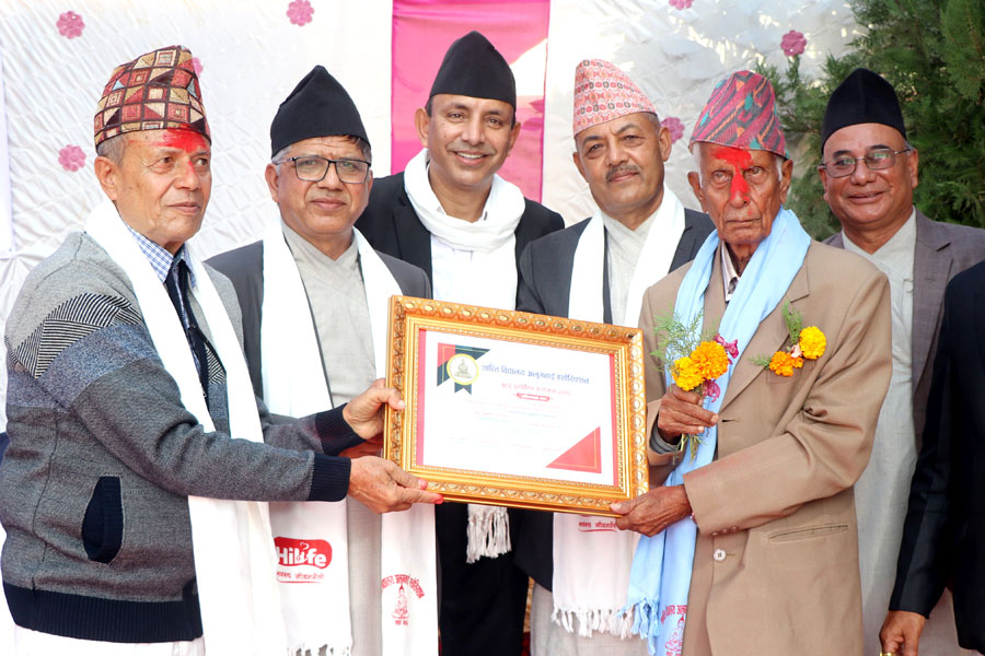 Honorable Tej Bahadur KC and Mrs Laxmi KC being Felicitated